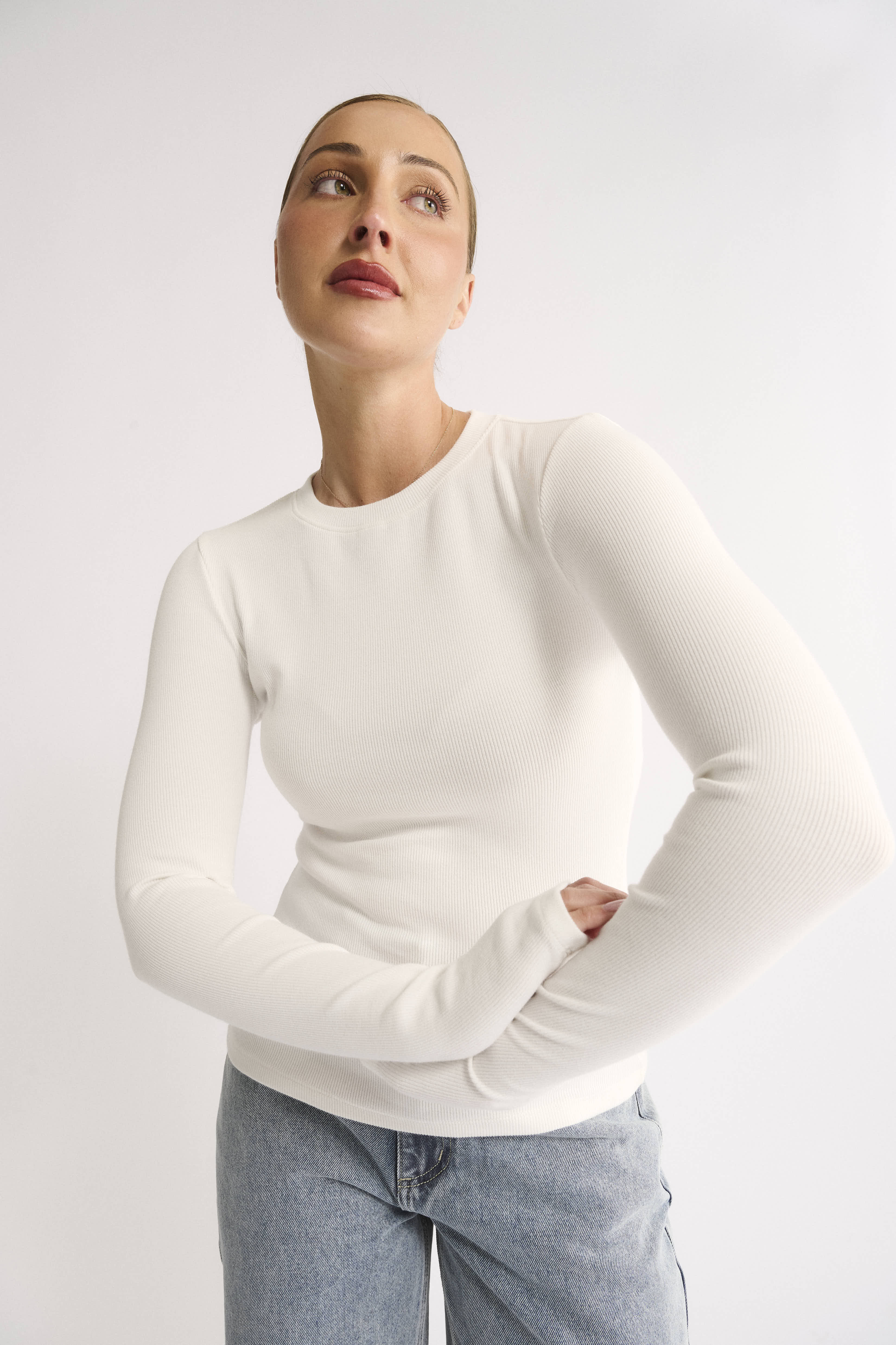 Upgrade your capsule wardrobe staple tops with Primi’s Carina Classic Long Sleeve in Powder, a best-seller celebrated for its blend of comfort and timelessness.