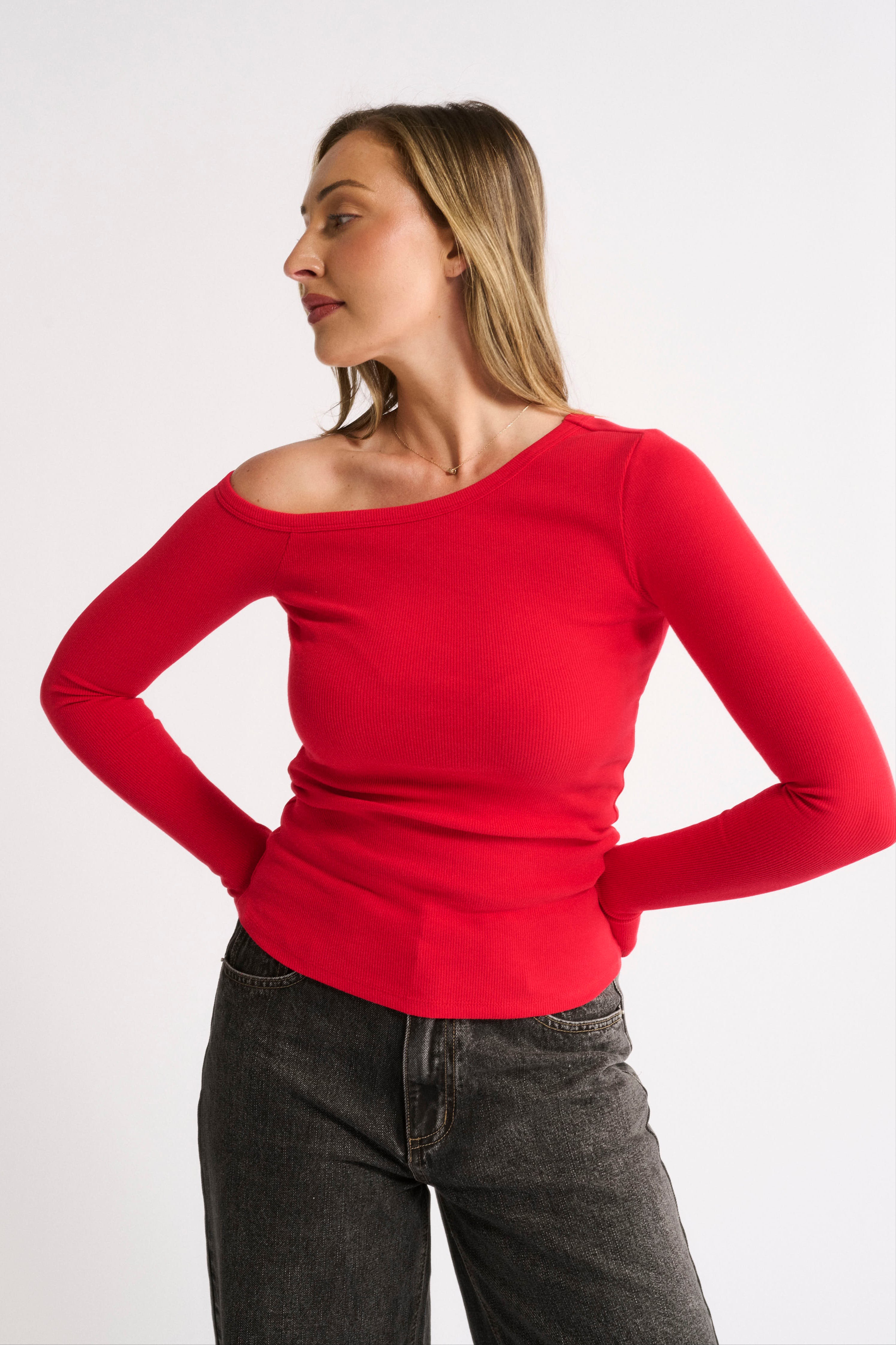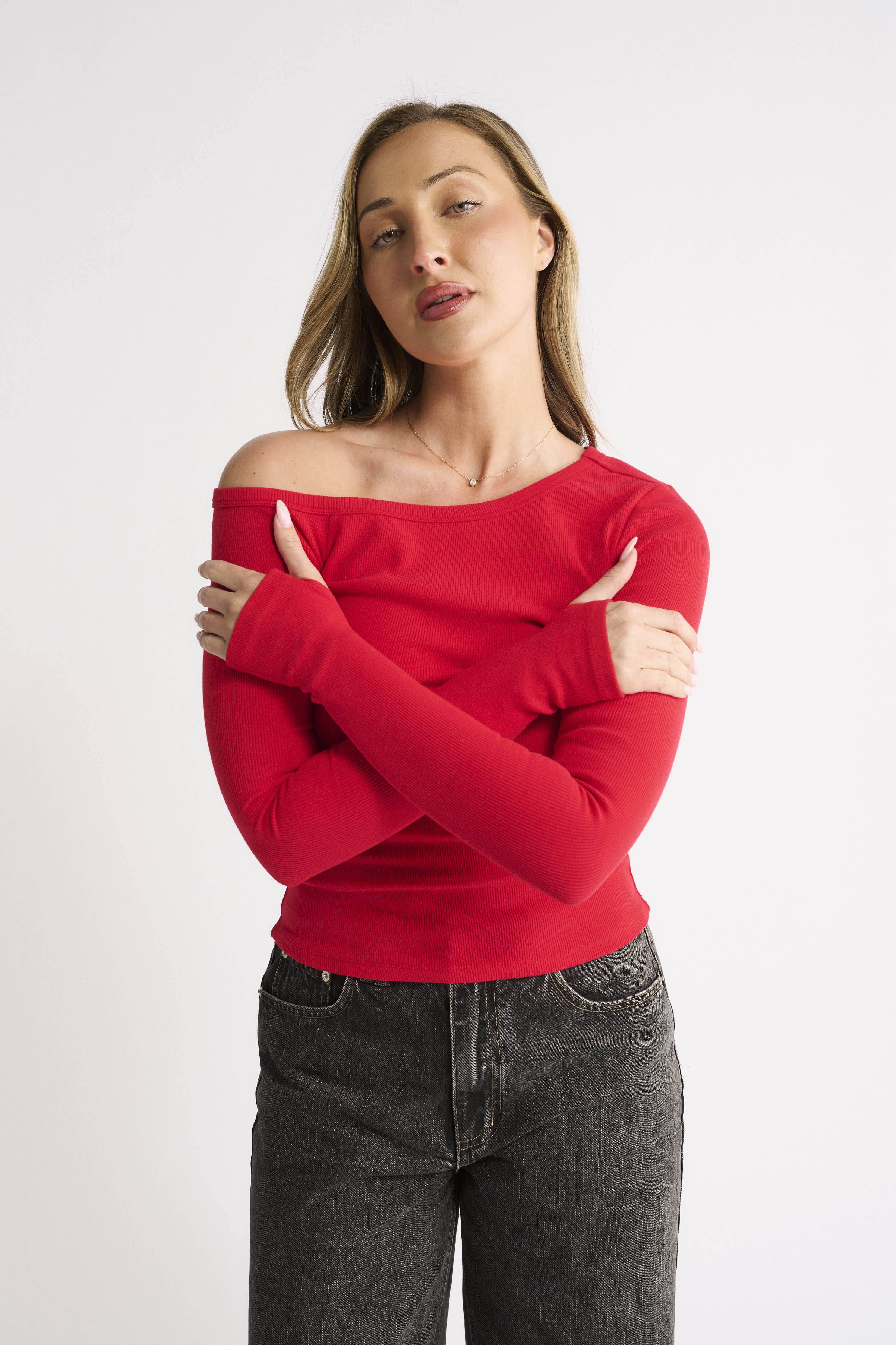 Chelsea Off Shoulder Long Sleeve - Radiant Red