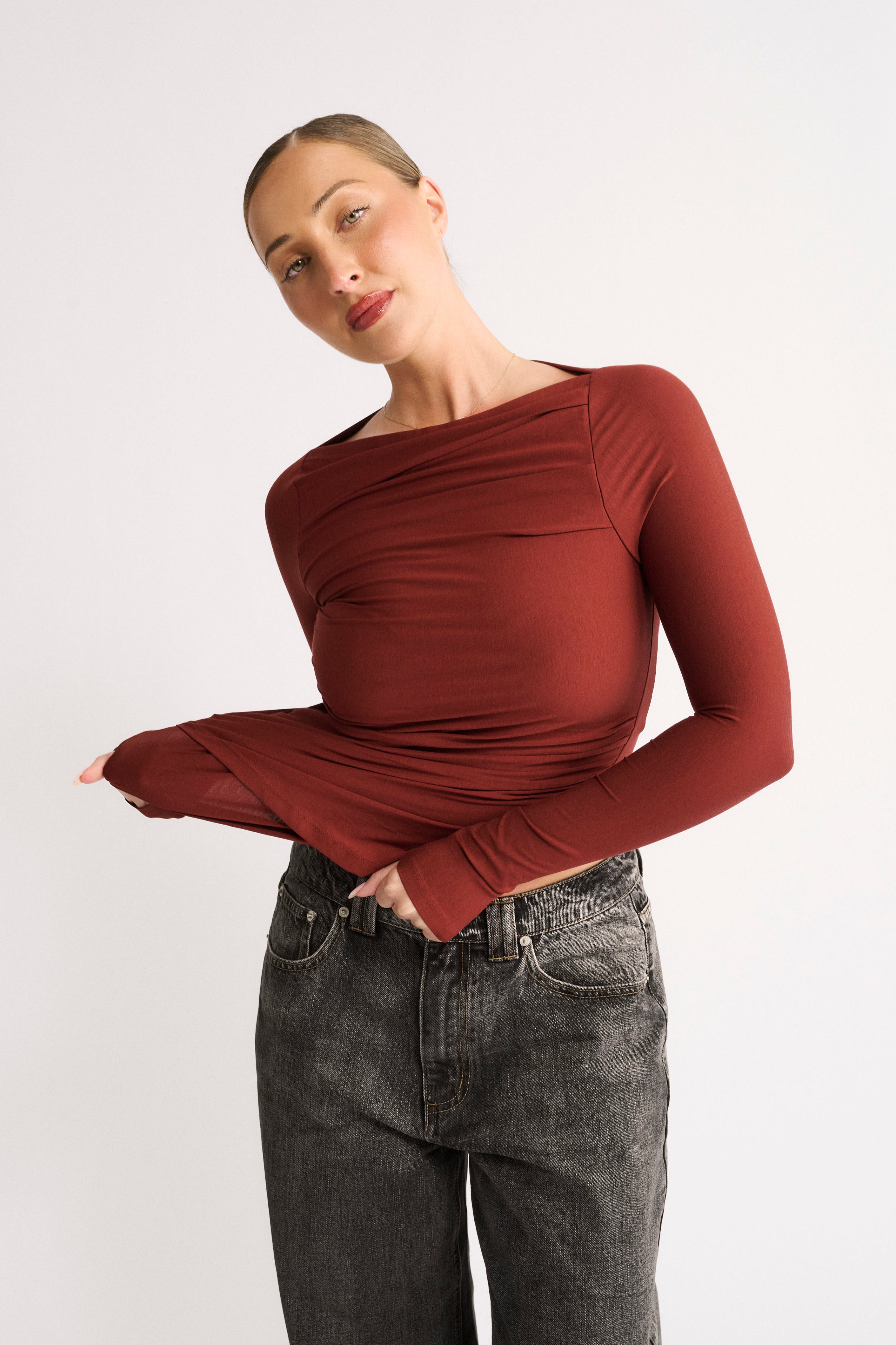 Margot Boat Neck Long Sleeve Brick - Final Sale